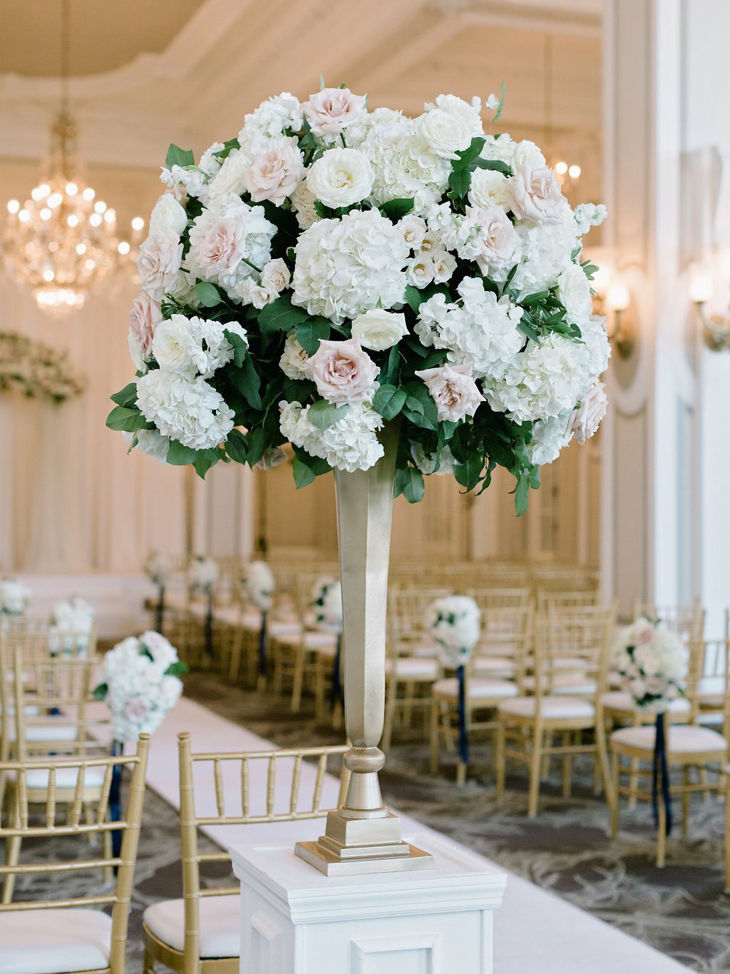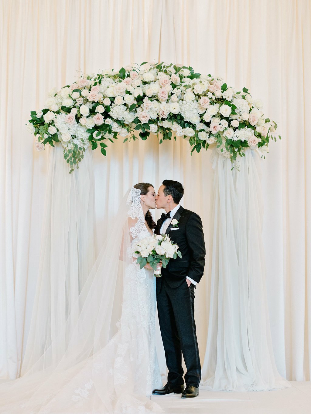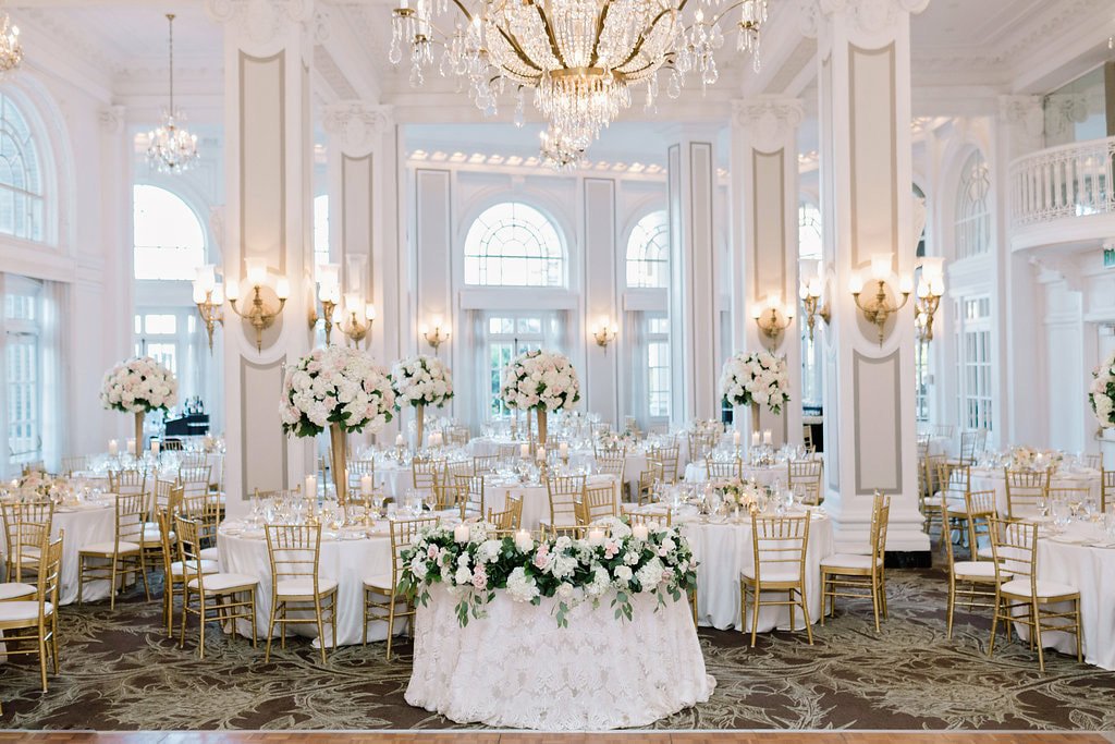 This Santa Monica wedding was the perfect blend of timeless elegance and modern luxury. With tall arrangements of white and blush flowers, golden chairs, and sparkling chandeliers, the ballroom was transformed into a breathtaking scene of romance.