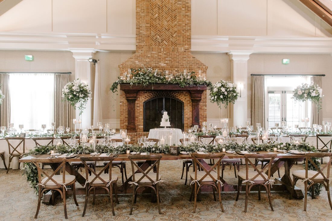 The fireplace became the perfect centerpiece, surrounded by lush floral arrangements, while long wooden tables added warmth and sophistication. Every element — from décor to details — was crafted with love, turning this celebration into a Malibu wedding experience filled with romance, beauty, and style.