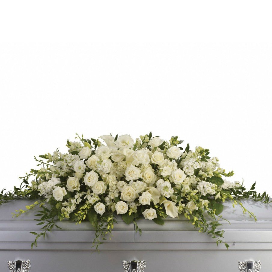This luxurious sympathy arrangement offers a graceful and timeless expression of support. Designed with exquisite, carefully selected blooms, it radiates sophistication while providing a comforting presence. A tribute of beauty and serenity, it honors cherished memories with elegance and conveys heartfelt compassion during life’s most difficult moments. Perfect for expressing your deepest condolences with the utmost care and refinement.