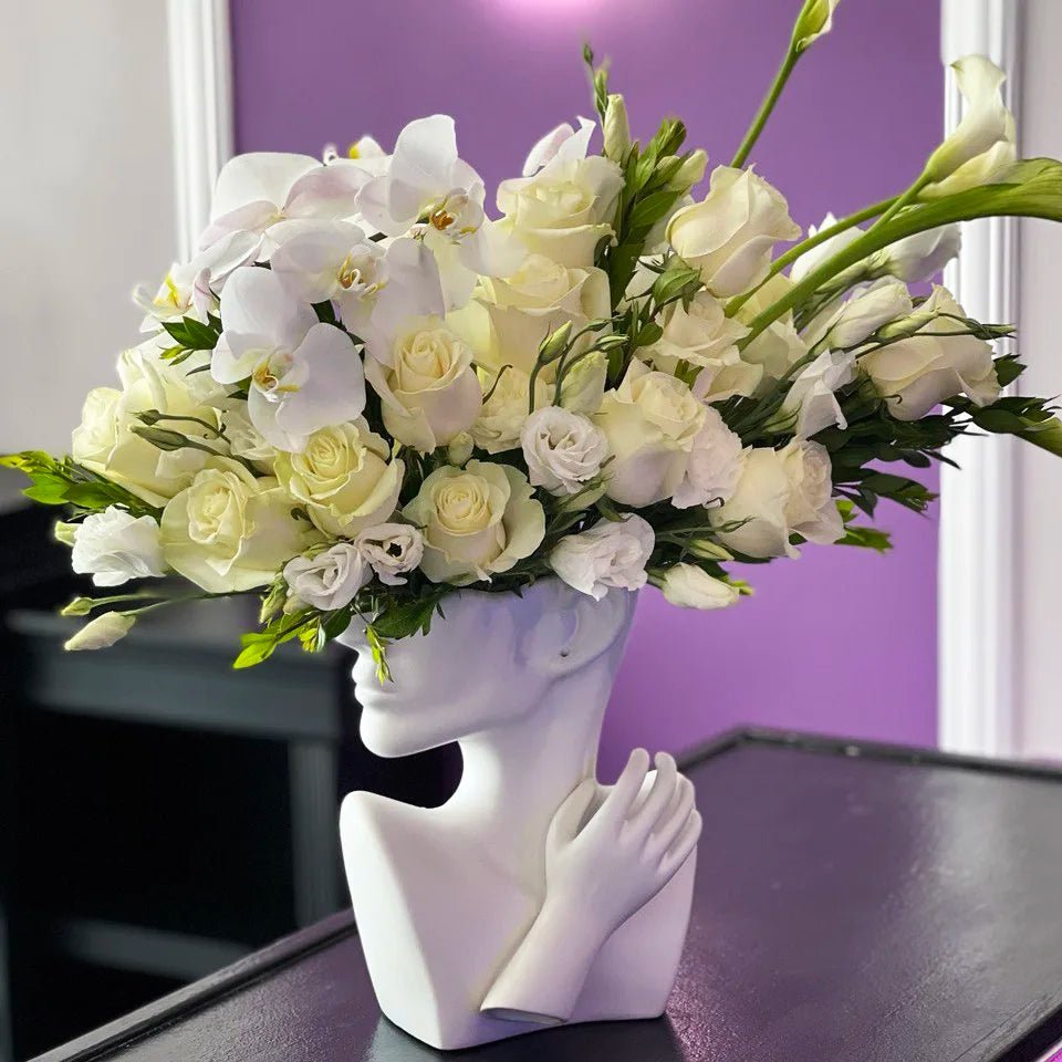 This creation is for those who appreciate sophistication and uniqueness in every detail. We associate white with purity, kindness, and peace—qualities beautifully reflected in this bouquet. Available in pink, white, purple, or mixed colors, it’s the perfect addition to your home, bringing an atmosphere of tranquility and heartfelt love.