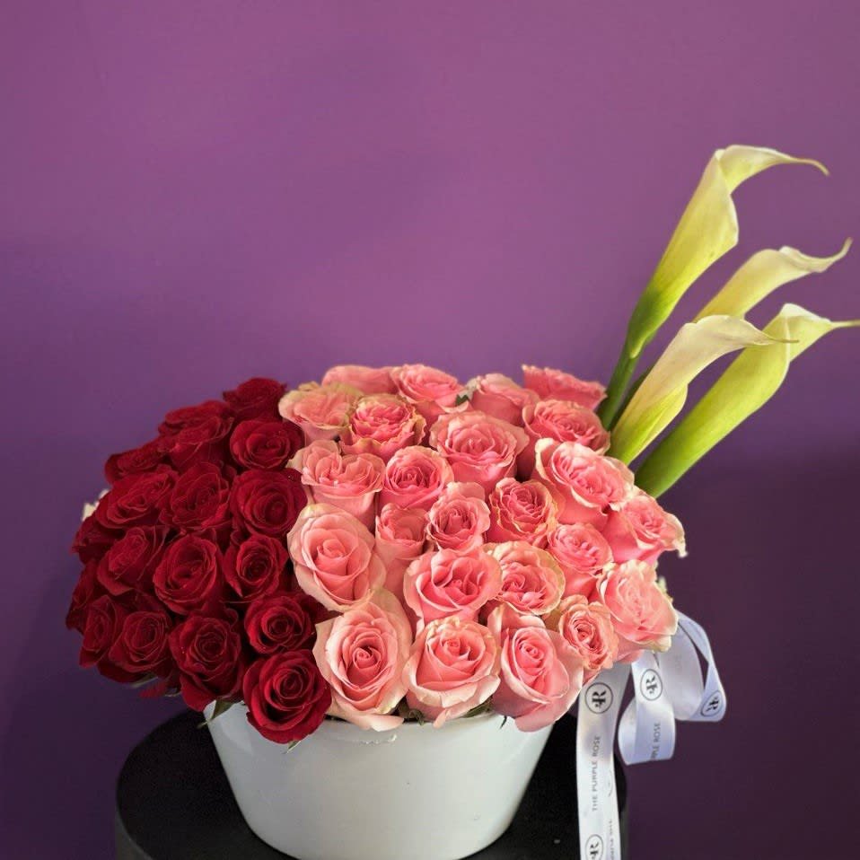 one side arrangement comes in red, white, pink, orange, purple, yellow or mix roses