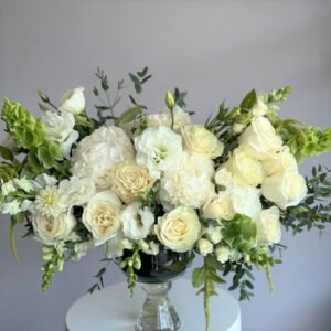 Elegant, radiant, and effortlessly graceful — the Scarlett bouquet is a celebration of softness and sophistication. Wrapped in delicate tones of ivory and blush, this arrangement speaks to the quiet beauty of love and tenderness.